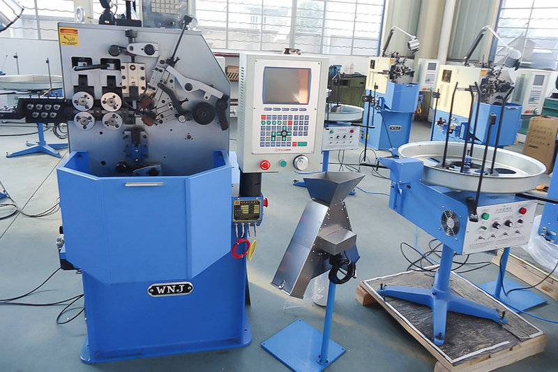 電腦螺旋彈簧機(jī)有多少高手?它是如何制作的?當(dāng)彈簧料通過矯直機(jī)構(gòu)和進(jìn)料機(jī)構(gòu),遇到頂桿前端形成的凹槽時,帶動彈簧料彎曲變形,彈簧圈繞成三個摩擦點(diǎn)抵靠在頂桿前端。材料。對于單頂桿卷簧機(jī),三個摩擦點(diǎn)為彈簧材料與傳動線板、軸頸、頂桿的切點(diǎn);對于雙頂桿卷簧機(jī)來說,三個摩擦點(diǎn)是彈簧材料和動力傳遞。線板,兩個曲線圖形儀表相接觸的切點(diǎn)。