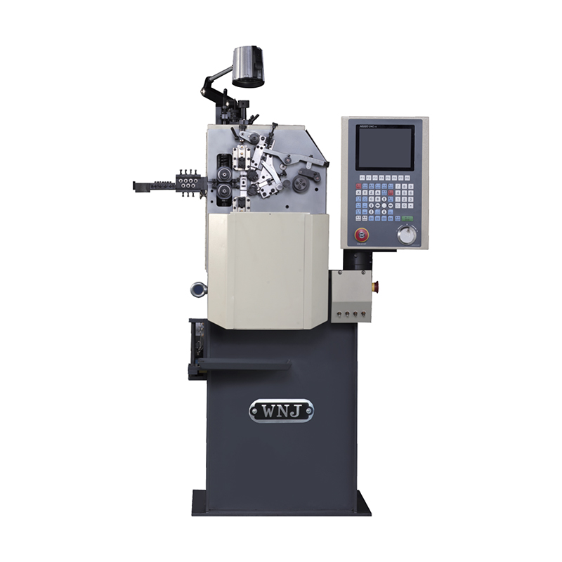 本機采用二軸高精度電腦控制送線軸和凸輪軸,二軸可同步或獨立運作。送線軸控制送線,凸輪軸帶動山輪控制外徑、節(jié)距、切刀和成形。該機適用于卷制各種左右旋彈簧扭簧,線材成形等異形簧??蛇x裝檢長儀,具有檢測、分選、補償功能。